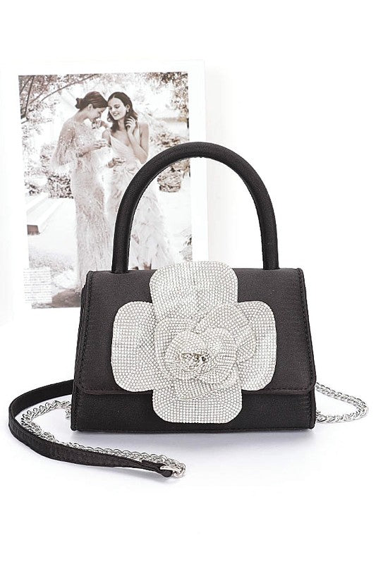 Rhinestone Flower Stain Top Handle Clutch Bag