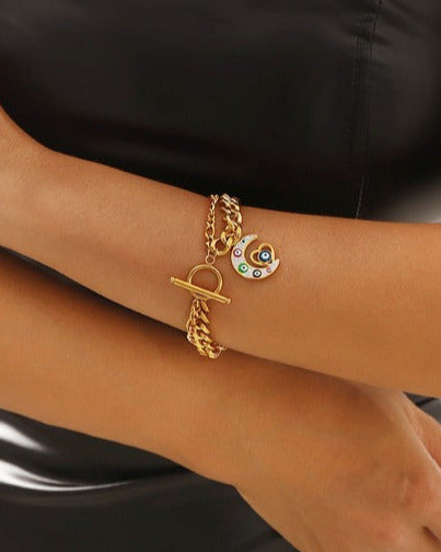 Evil Eye Moon Chain Bracelet β 18K Gold Plated Stainless Steel