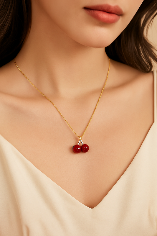 Golden Cherry Charm Necklace