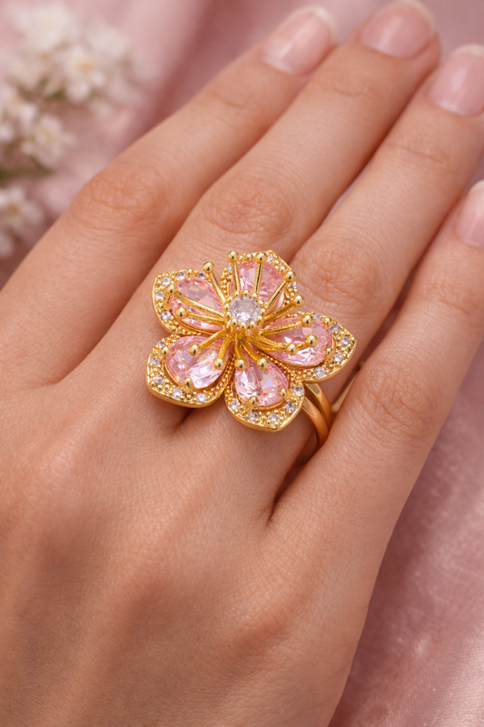 Sakura Zircon Flower Ring