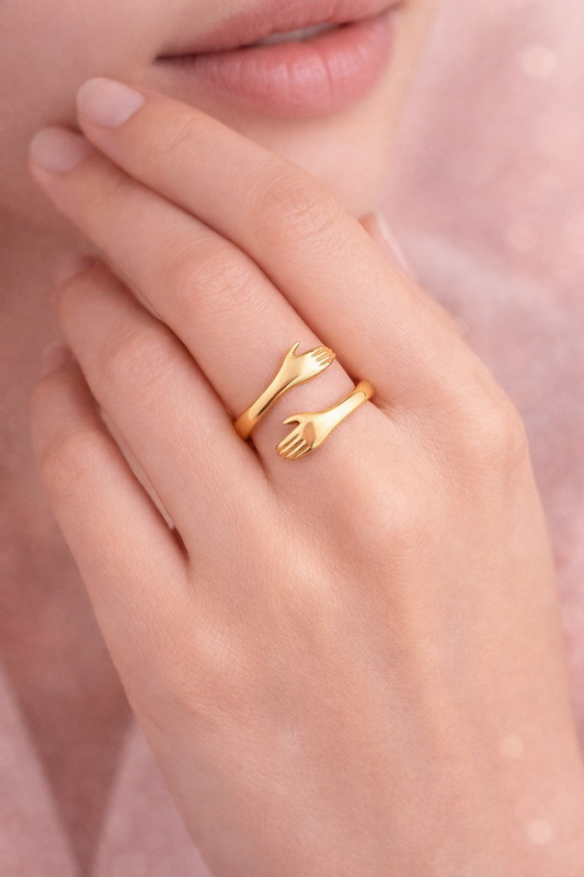 Golden Embrace Hands Ring β 925 Sterling Silver Adjustable Ring