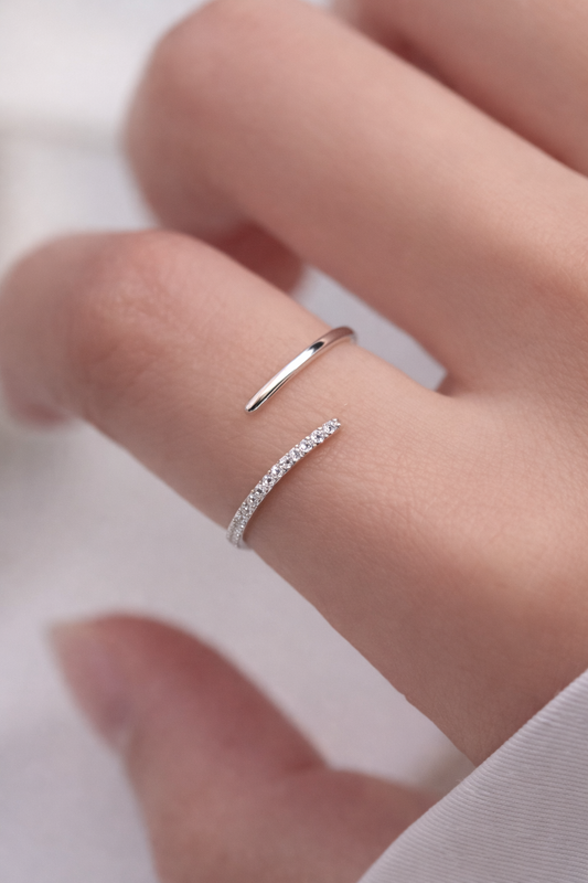 Luna Minimal Open Ring β 925 Sterling Silver Adjustable Zirconia Ring