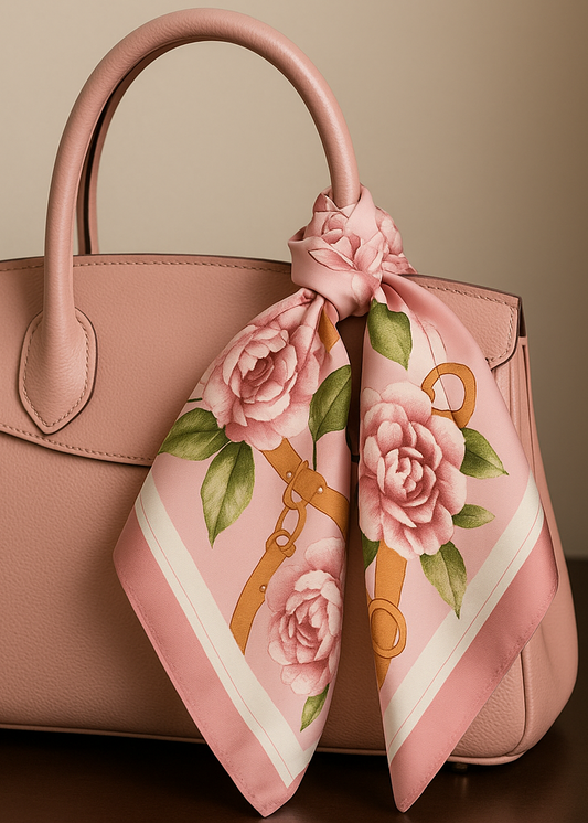Silk Equestrian Scarf Bandana β Square Headscarf with Orange & Navy Border