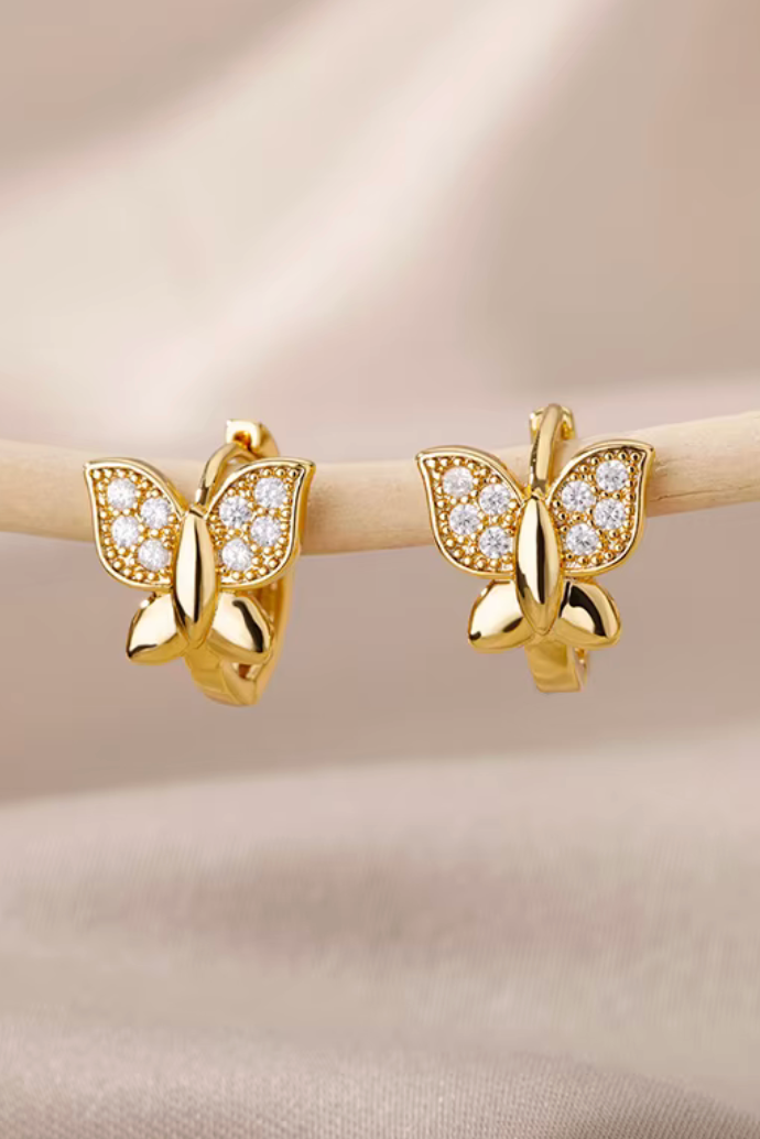 Embrace timeless elegance with our Butterfly Hoop Earrings, crafted from durable stainless steel and finished in radiant gold. Each earring features a delicate butterfly adorned with sparkling cubic zirconia, symbolizing transformation and beauty. Lightweight and hypoallergenic, they’re perfect for everyday wear or to elevate any evening look with a touch of sophistication.