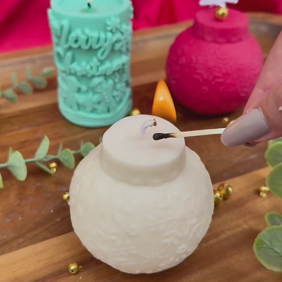 Each candle is carefully handcrafted with attention to detail, making it not just a decorative piece but a sophisticated accent for the season. Ideal for adding a sense of warmth and refinement to your holiday settings, this ornament-inspired candle elevates any space with its graceful presence and holiday spirit.