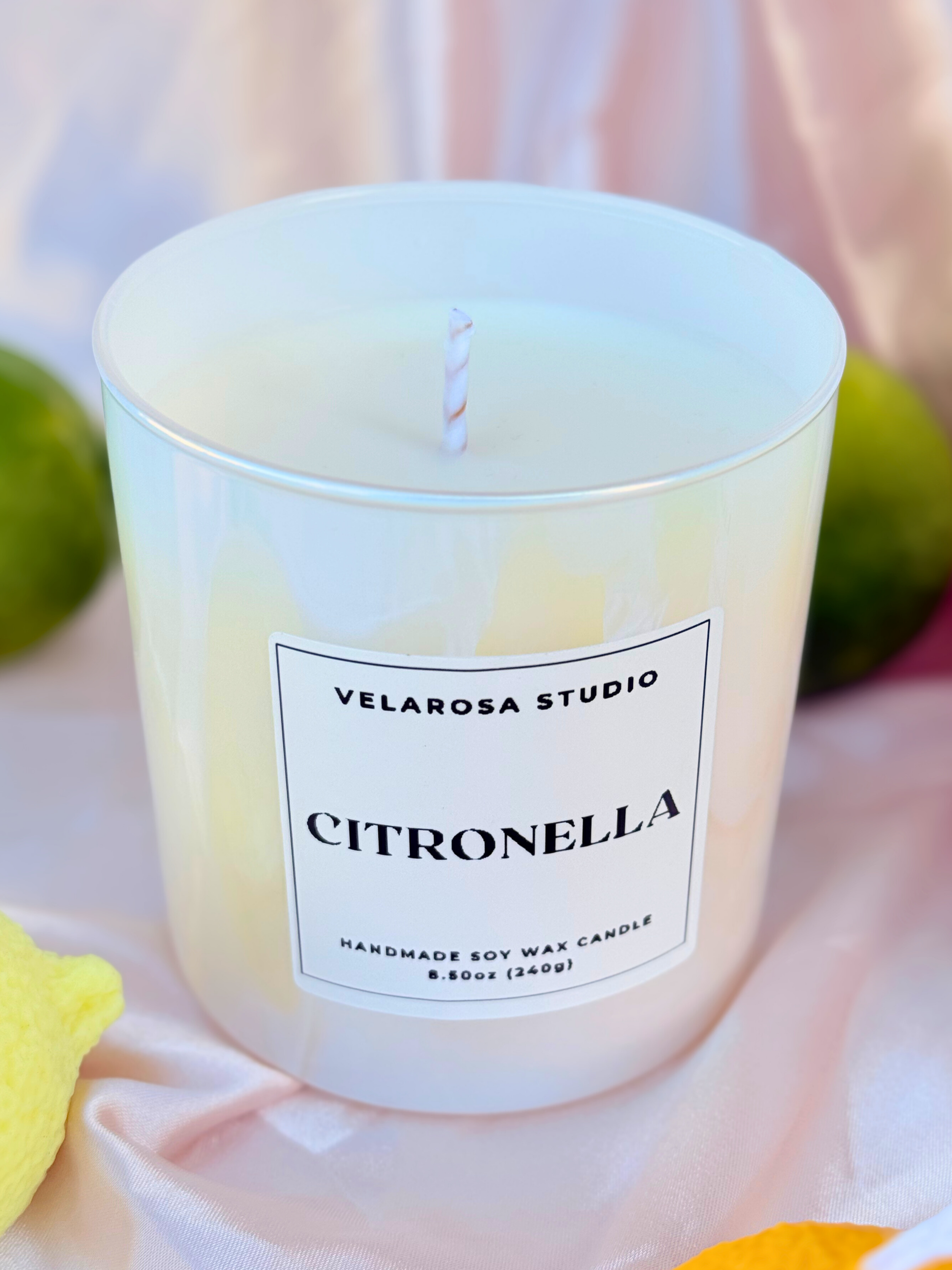 Refresh your outdoor spaces with the clean, herbal scent of our Citronella Candle. Hand-poured with 100% natural soy wax, this candle combines the citrusy brightness of lemon peel with the earthy freshness of lemongrass and citronella for a naturally uplifting experience.