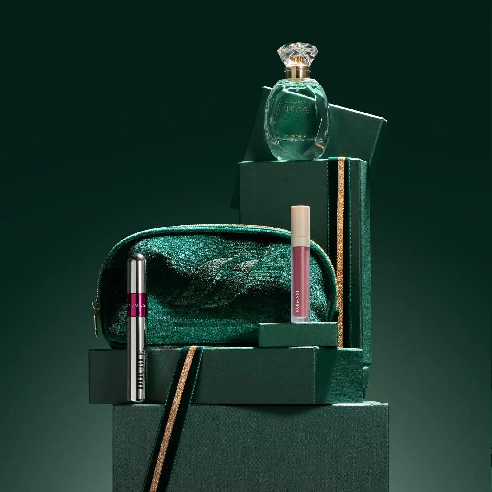 Discover timeless elegance with the Hera Glam Set, a perfect fusion of fragrance and makeup must-haves. This curated collection combines the iconic Hera Eau de Parfum, the Double Lash Extend Mascara for bold, voluminous lashes, and the Matte Liquid Lipstick 08 Rose Dream for a chic, long-lasting finish — everything you need to create an effortlessly sophisticated look. Finished with a luxurious velvet green clutch that doubles as a stylish evening bag, this set is the ultimate expression of beauty and elegance — ideal for the holidays.