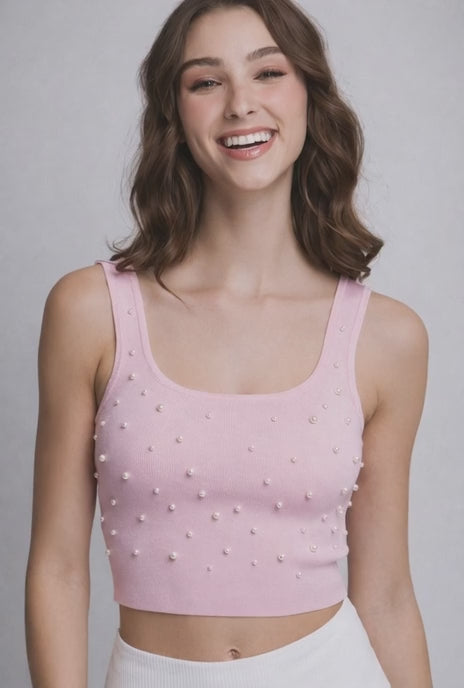 The Pearl Detail Ribbed Crop Tank Top is the perfect statement piece to elevate your everyday outfits. Designed with a flattering square neckline and wide straps, this ribbed crop top features delicate pearl embellishments that add a soft, elegant touch without feeling overdone.
